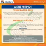 Above we discuss Allied Bank Teller Jobs 2025 Apply Online for Cashier | www.abl.com for which fresh Graduates in Commerce are welcome to apply via online before the last date mentioned above.