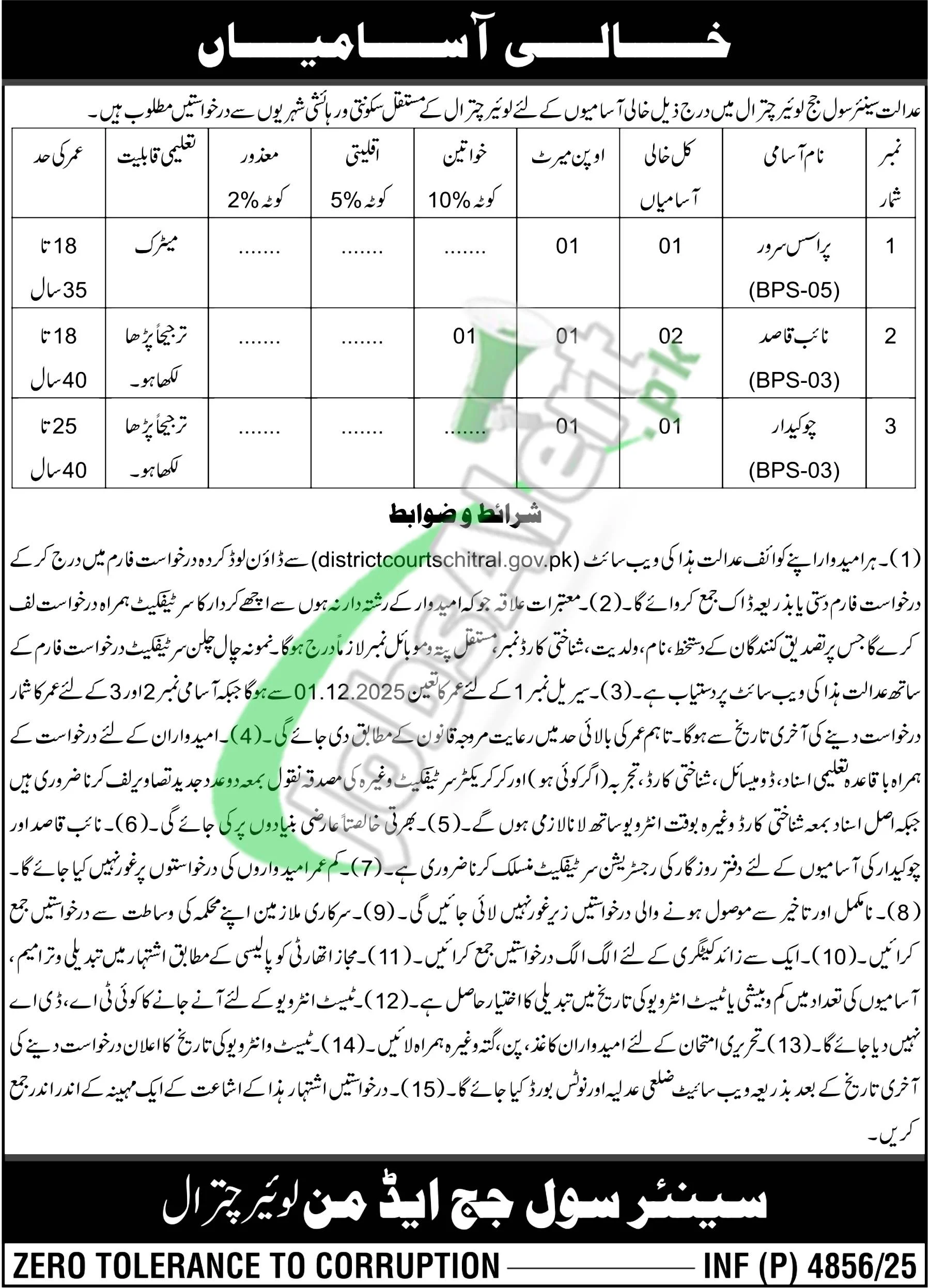 Civil Court Lower Chitral Jobs 2025 Application Form | www.districtcourtschitral.gov.pk
