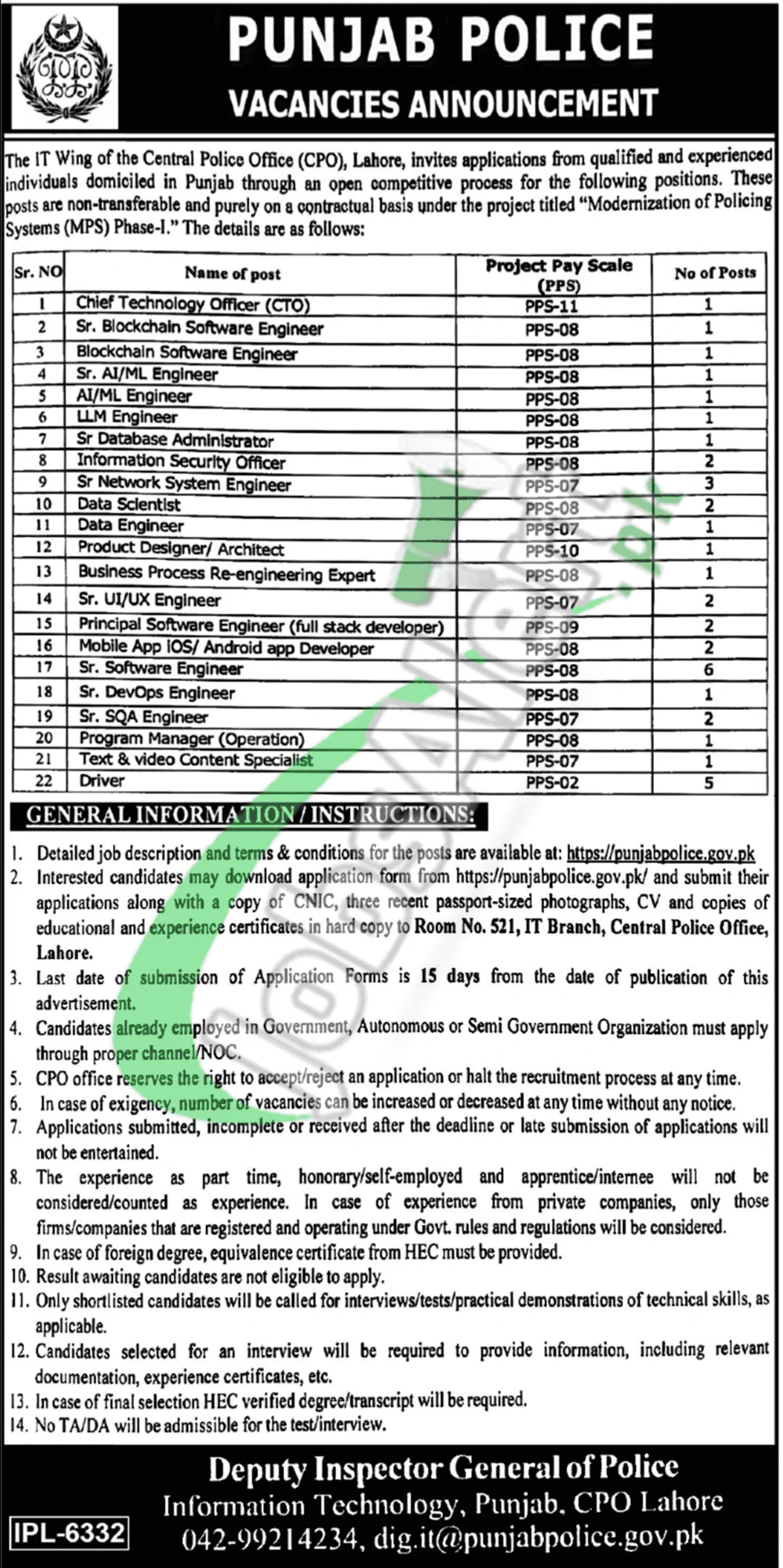 | Title: | CPO Lahore Jobs 2025 Punjab Police Application Form Download |