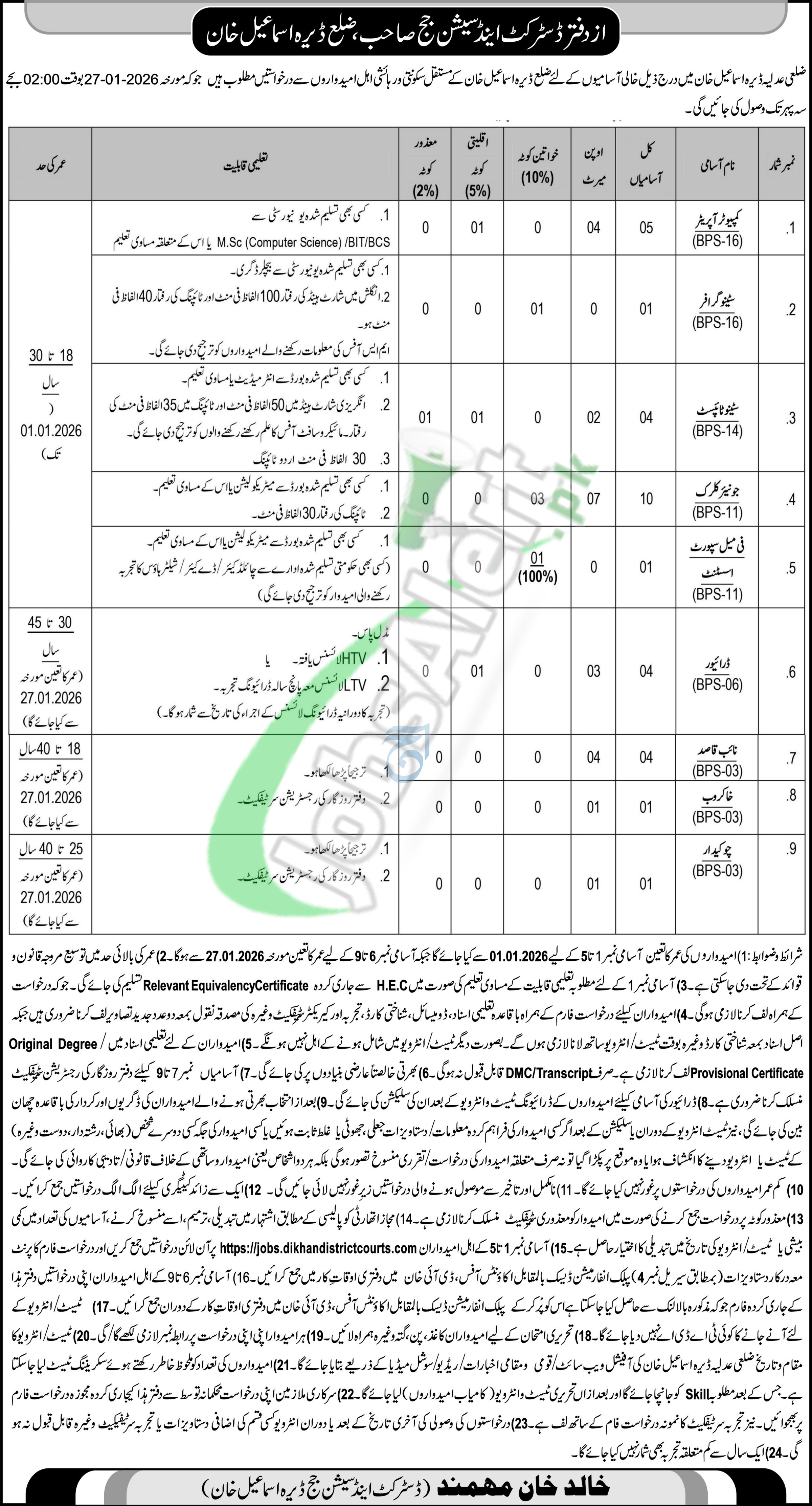 District and Session Court DI Khan Jobs 2026 Latest Advertisement