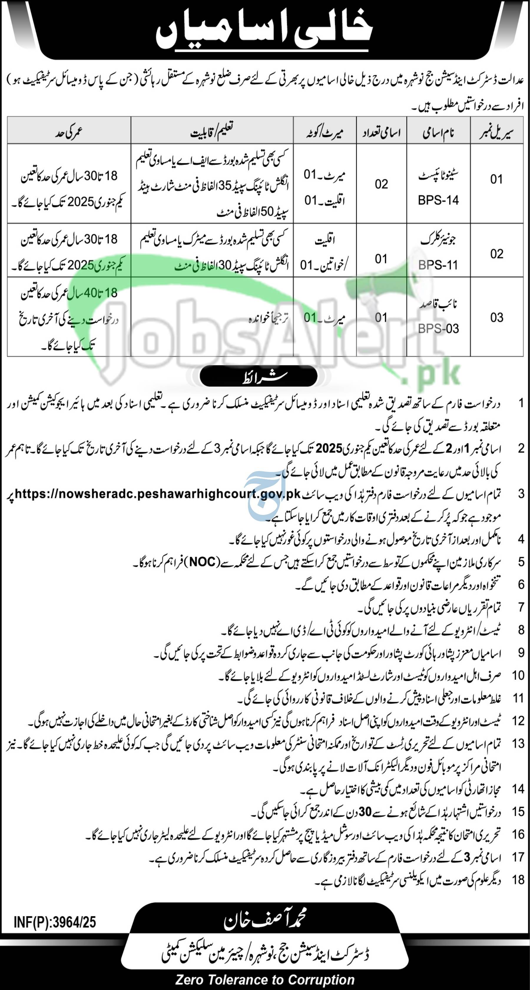 Civil Court Nowshera Jobs 2025 Application Form Download