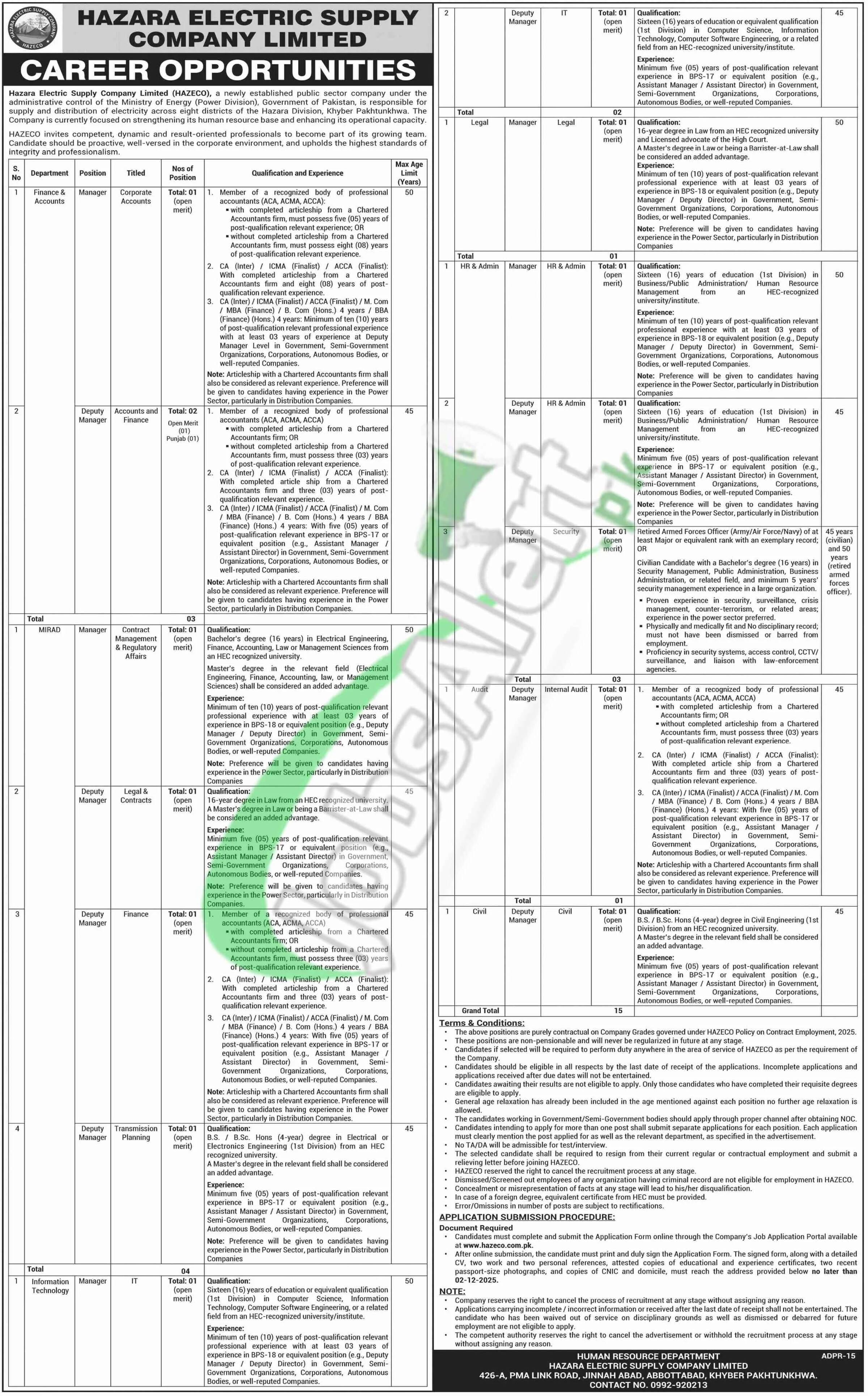 | Title: | Hazara Electric Supply Company Jobs 2025 Latest WAPDA HAZECO Vacancies |