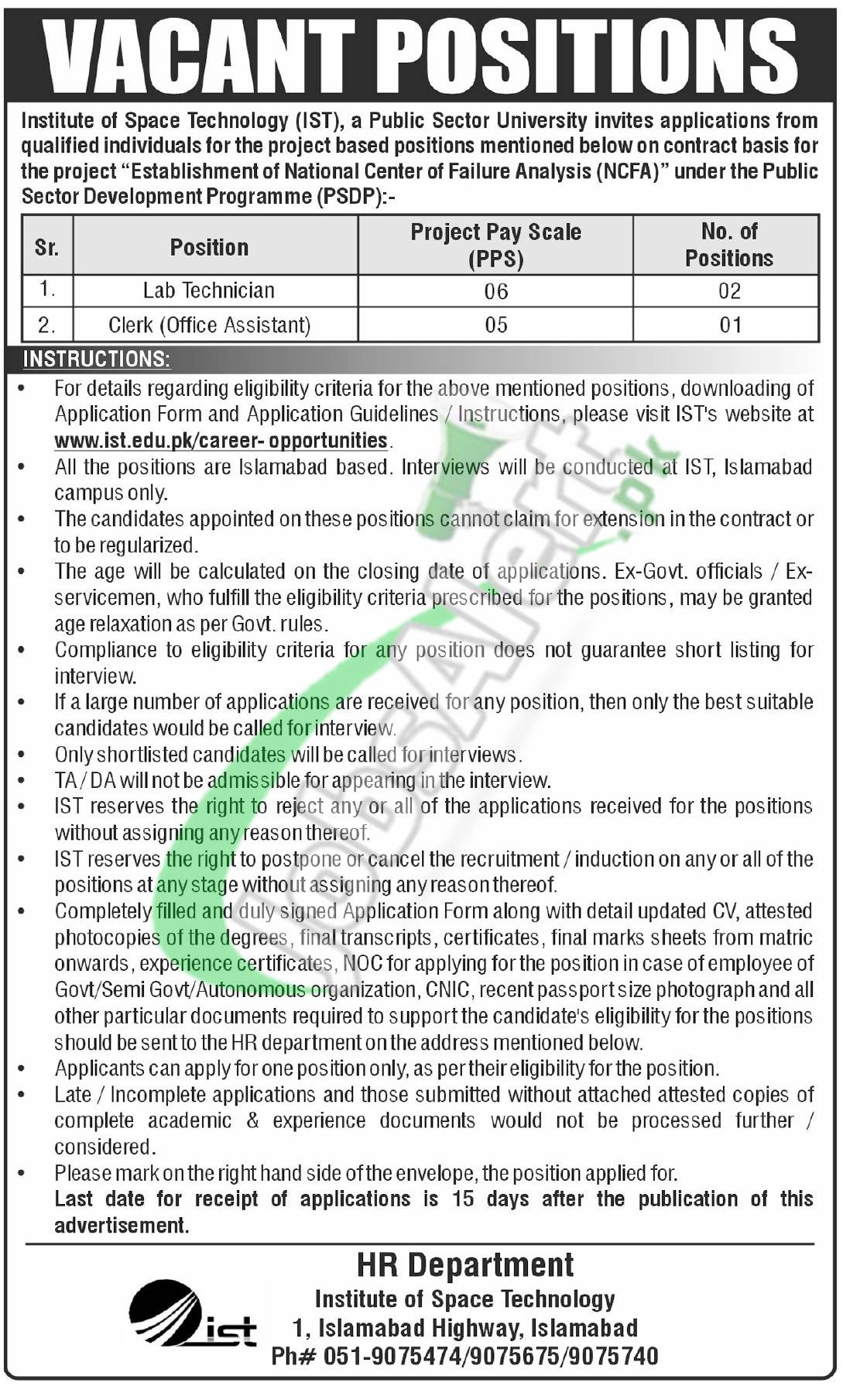 Institute of Space Technology Jobs 2025 Apply Last Date