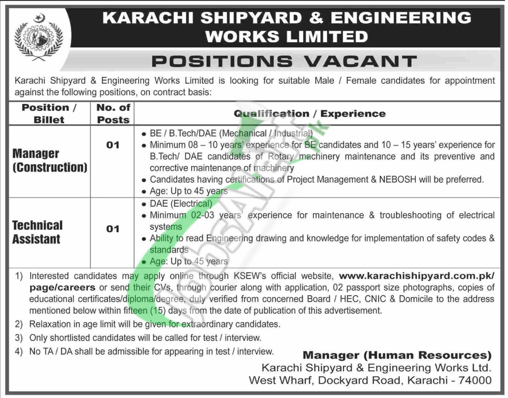 Find www.karachishipyard.com.pk Online Apply Jobs 2025 latest vacancies named as (Manager (Construction), Technical Assistant) for which candidates possessing qualification BE / B.Tech / DAE (Mechanical/Industrial/Electrical) with 2 to 10 years experience holders are welcome to apply online at www.karachipyard.com.pk before the last date 17th November 2025.
